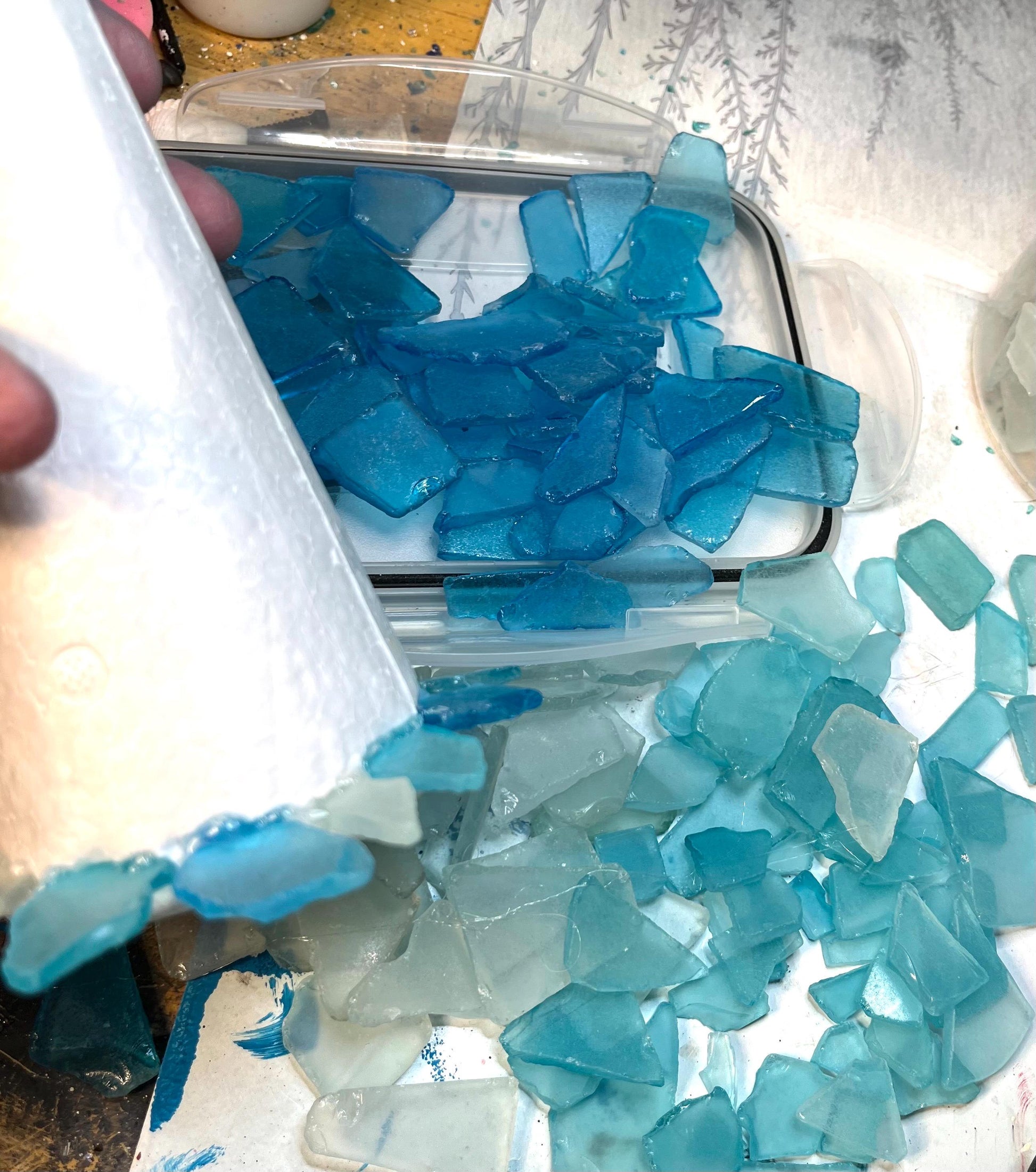 I use the most beautiful tumbled man made sea glass.