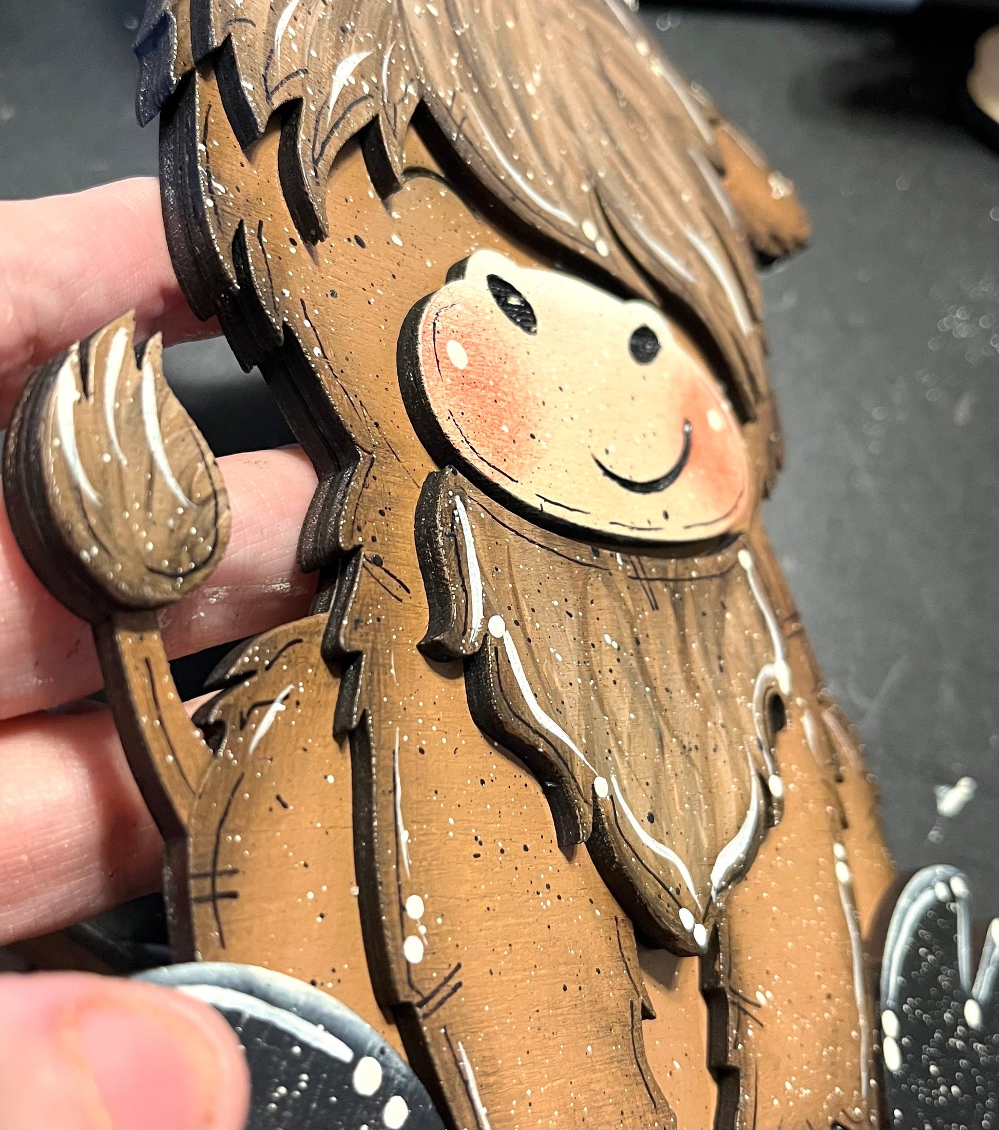 Approx. 8" tall and made from 3 layers of wood, this little guy can sit on your counter, desk, or anywhere you’d like!